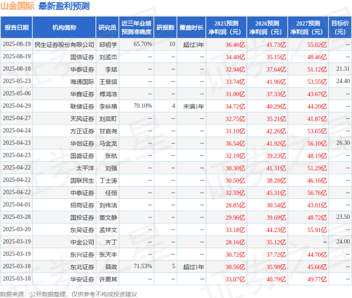 中国银河证券股份有限公司阎予露,华立近期对山金国际进行研究并发布了研究报告《2025年半年报业绩点评:金价上涨业绩高增,金矿资源接续性强》,给予山金国际买入评级。